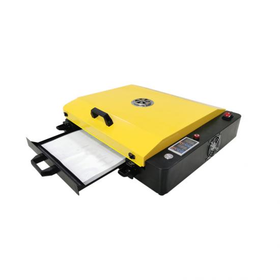 A3 dtf oven designed for A3 dtf printing.Automatic timing,arrival buzzer and LED alarm.Maximum size:430*318mm.