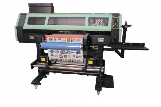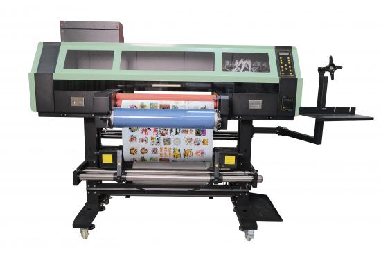 Zhou Surname 60cm UV roll to roll UV dtf printer,printing and laminating all in one machine.With three U3200 print head,Printing speed 6 pass 6 square meters.